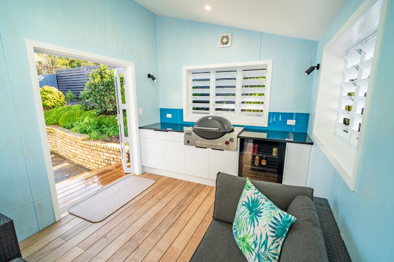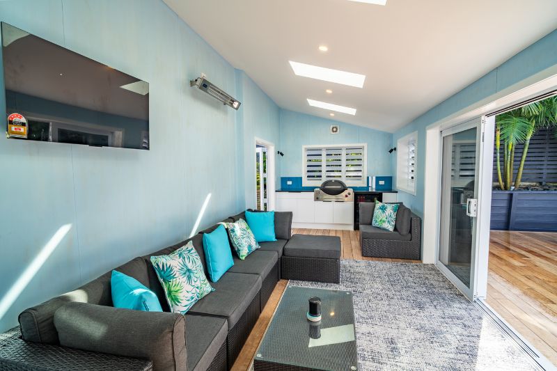 A key highlight of the project was the construction of a rear sunroom — the final piece of the puzzle. This new space created seamless indoor-outdoor flow to the expansive deck and gave the homeowners an ideal spot for entertaining, complete with room for the BBQ and views out over the water.
